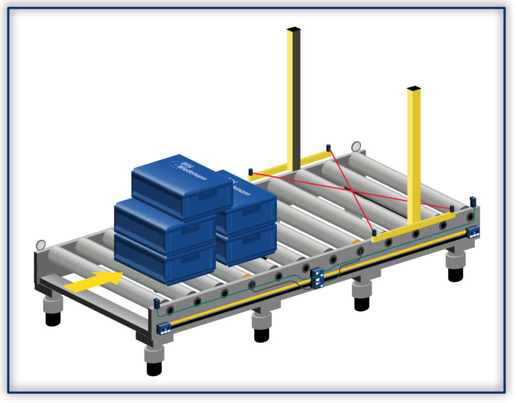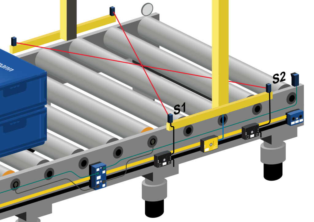 Rozmieszczenie czujników mutingu definiuje typ mutingu jaka dana aplikacja wykorzystuje. Rozróżniamy tutaj Muting Krzyżowy (Rys.1) oraz Muting Sekwencyjny (Rys. 2). Sama technologia AS-Interface umożliwia łatwą i szybką adaptację tych dwóch sposobów zawieszenia funkcji bezpieczeńtwa kurtyny/bariery świetlnej.