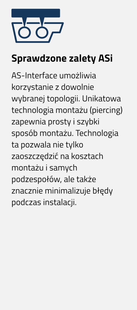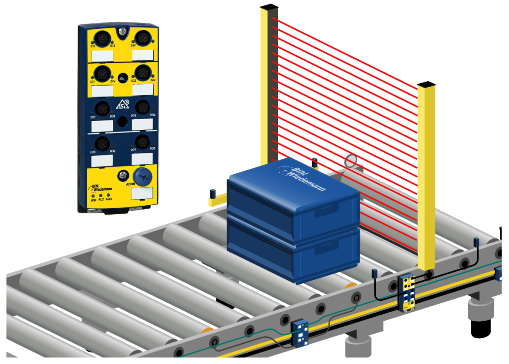 W odniesieniu do funkcji Muting wysoce istotne jest wcześniejsze określenie indywidualnych wymagań instalacyjnych danej aplikacji. Nie zawsze sensowne jest doprowadzenie wszystkich sygnałów do jednego punktu. Na przykład gdy czujniki są zbyt oddalone od siebie nie ma sensu korzystania z długich przewodów łączeniowych. Firma Bihl+Wiedemann oferuje odpowiednie rozwiązania również dla takich zastosowań – na przykład, skorzystanie z dystrybutorów aktywnych. Są to specjalne wykonania standardowych modułów ASi, zbierające niewielkie ilości sygnałów w danym miejscu.