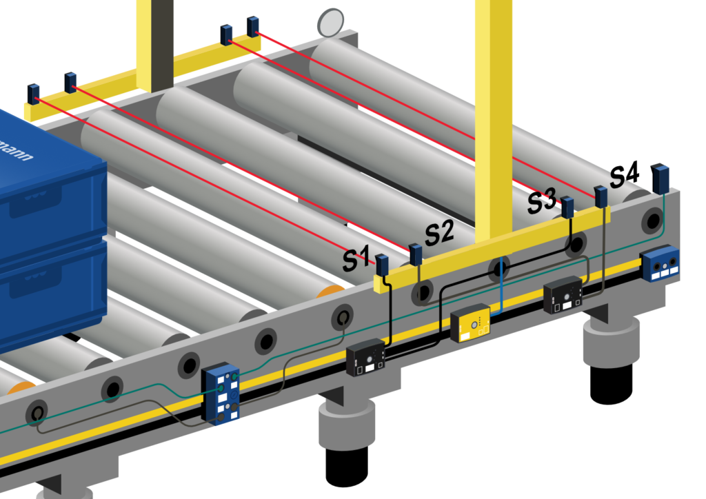 Rys. 4. W przypadku mutingu sekwencyjnego pary czujników muszą być koniecznie łączone do oddzielnych modułów, np. Moduł 1 czujnik S1 i S3; moduł 2: czujnik S2 i S4.