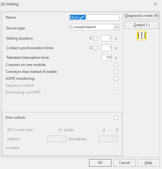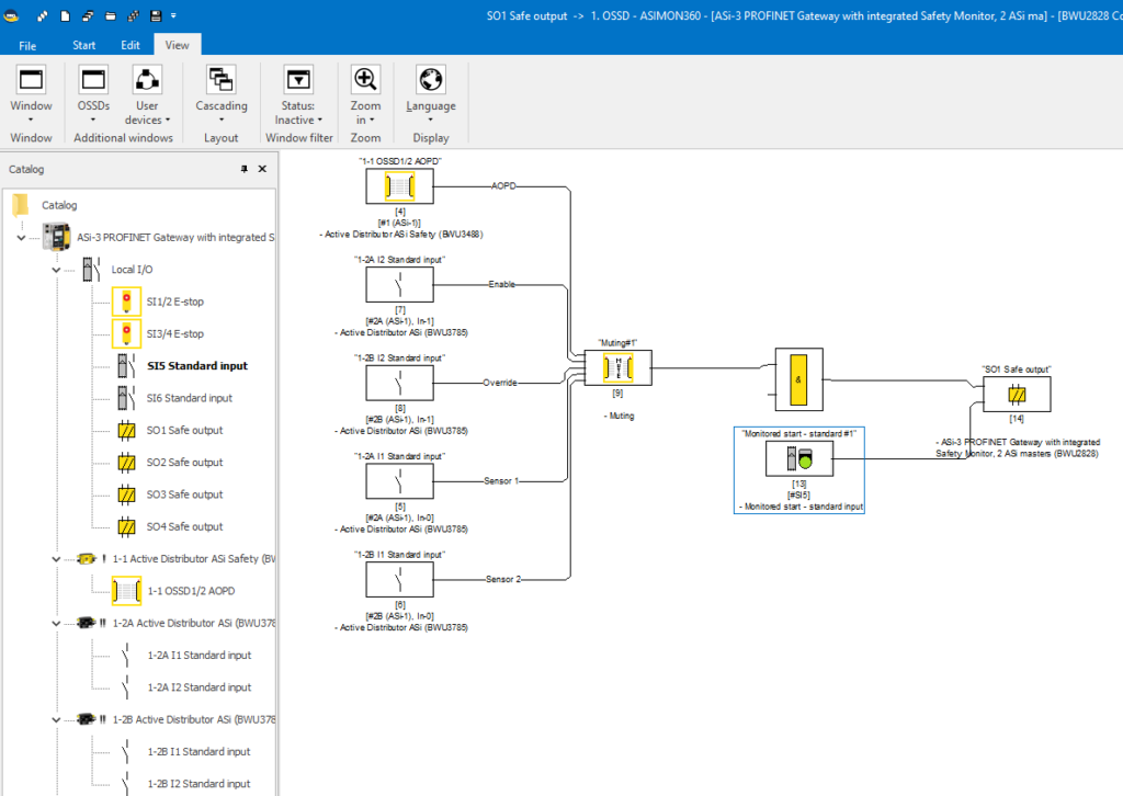 Oprogramowanie ASIMON umożliwia skorzystanie zarówno z wersji krzyżowej jak i sekwencyjnej funkcji zawieszenia wyjścia bezpiecznego. Sama konfiguracja jest bardzo prosta i intuicyjna (Rys.5.)
